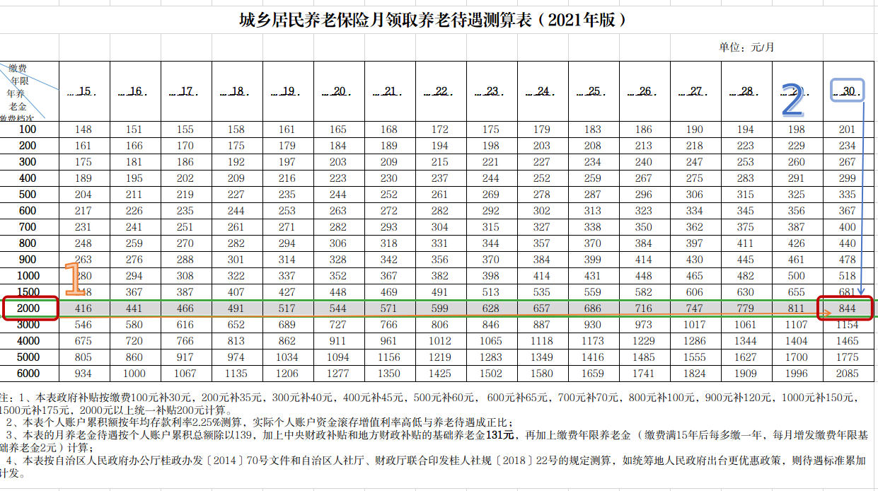 “着数”就是它的惠民政策多。如正常缴费都有政府补贴(35-200元/年),多缴多补(每年交2000元以上都补200元);政府为建档立卡脱贫后处于2年扶持期内的人员、特困人员、重度残疾人、贫困残疾人等特殊困难群体每年代缴100元保费,为低保对象代缴50元保费;基础养老金由政府负责出资;缴费超15年的每多一年另外增加基础养老金2元;养老金可终身领取。