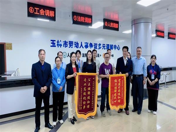 劳动者谢某说:“多谢调解中心党员干部为我们解决了纠纷,仲裁诉讼不知道什么时候才能解决”。“作为党员干部,为民服务、当好人民公仆,始终把群众的安危冷暖放在心上,是我们义不容辞的责任。”党员先锋岗调解员沈益说道。两面鲜红的锦旗,是群众对调解工作的最高认可,更是前行的动力。下一步,玉林市劳动人事多元调解中心将持续深耕党建引领调解工作,不断优化服务举措、提升调解专业质效,用心用情用力化解各类劳资矛盾,全力捍卫劳动者合法权益,为构建更加和谐稳定的劳动关系,助力玉林经济社会高质量发展提供坚实有力的保障。