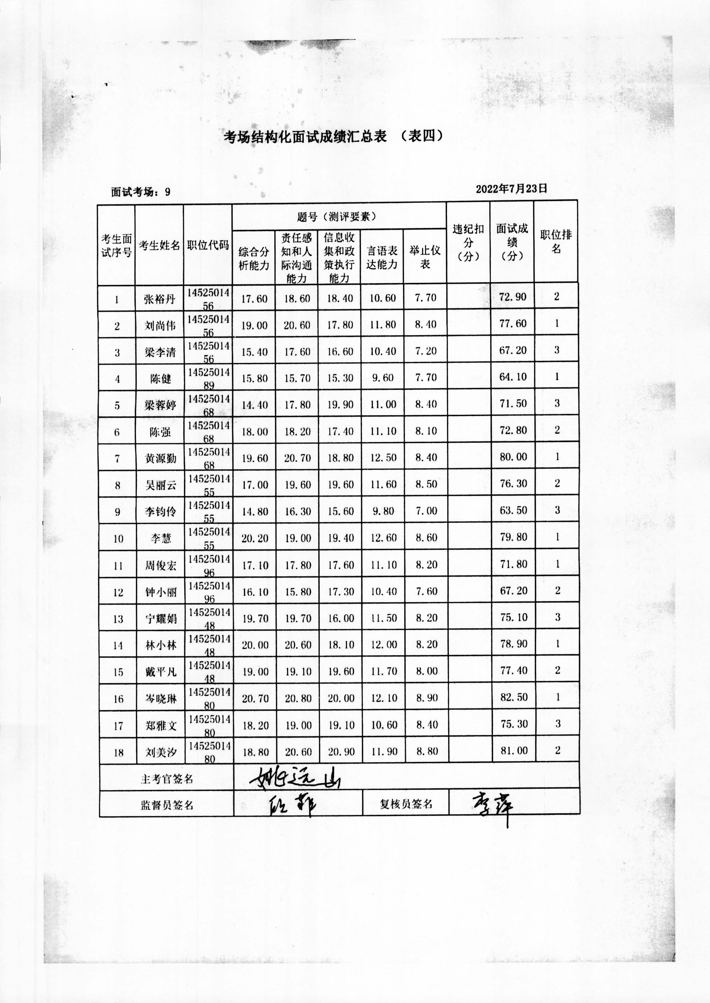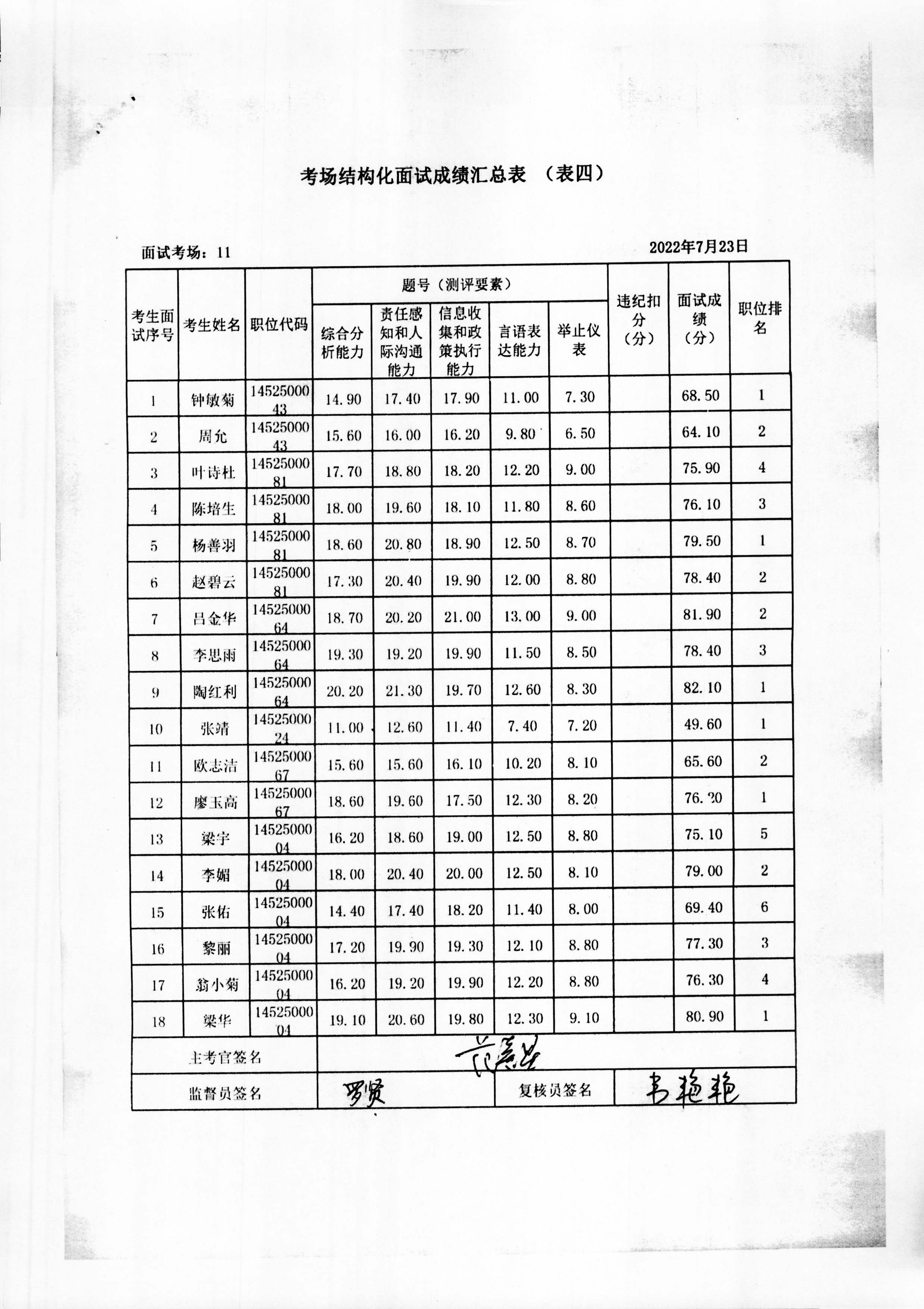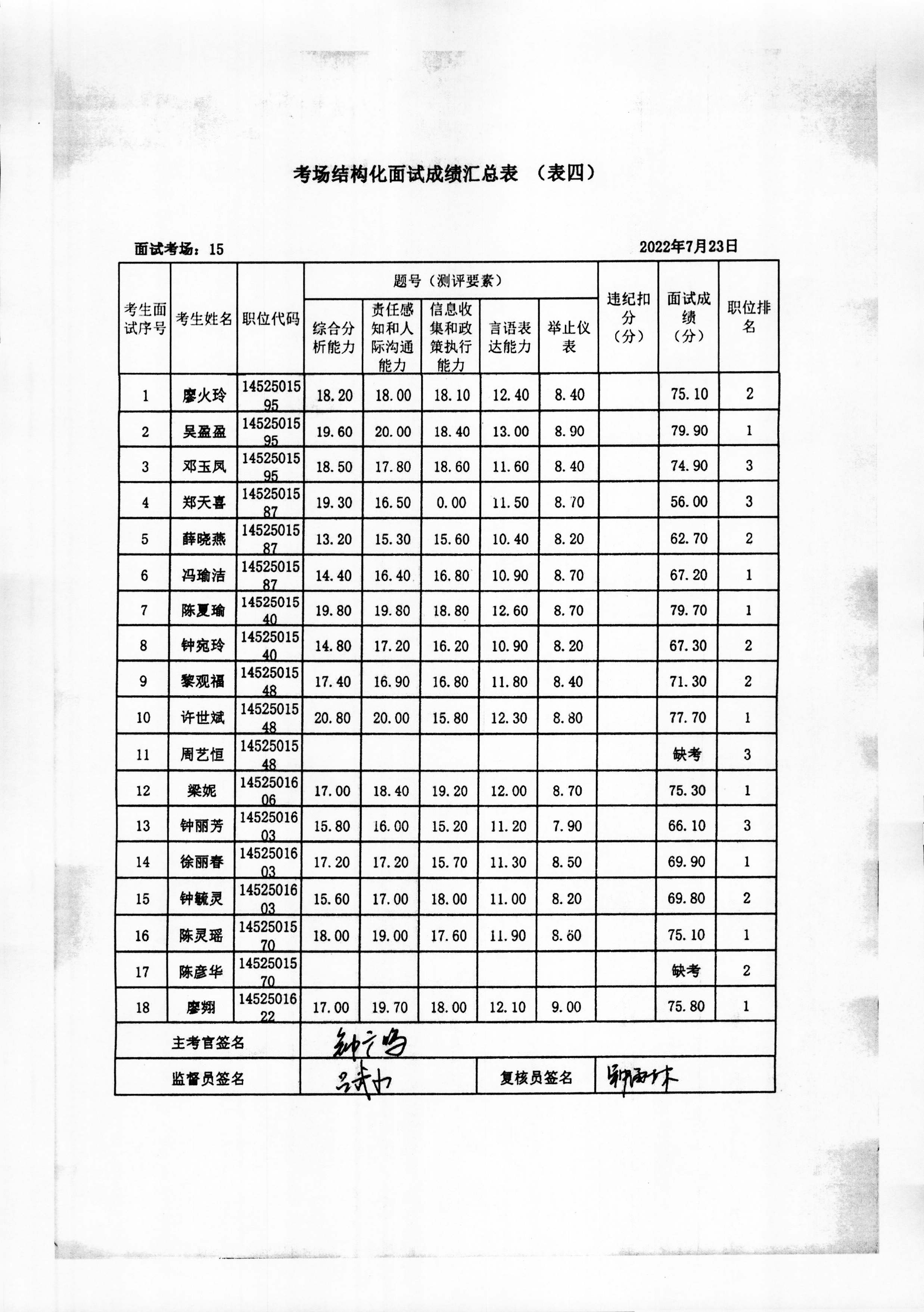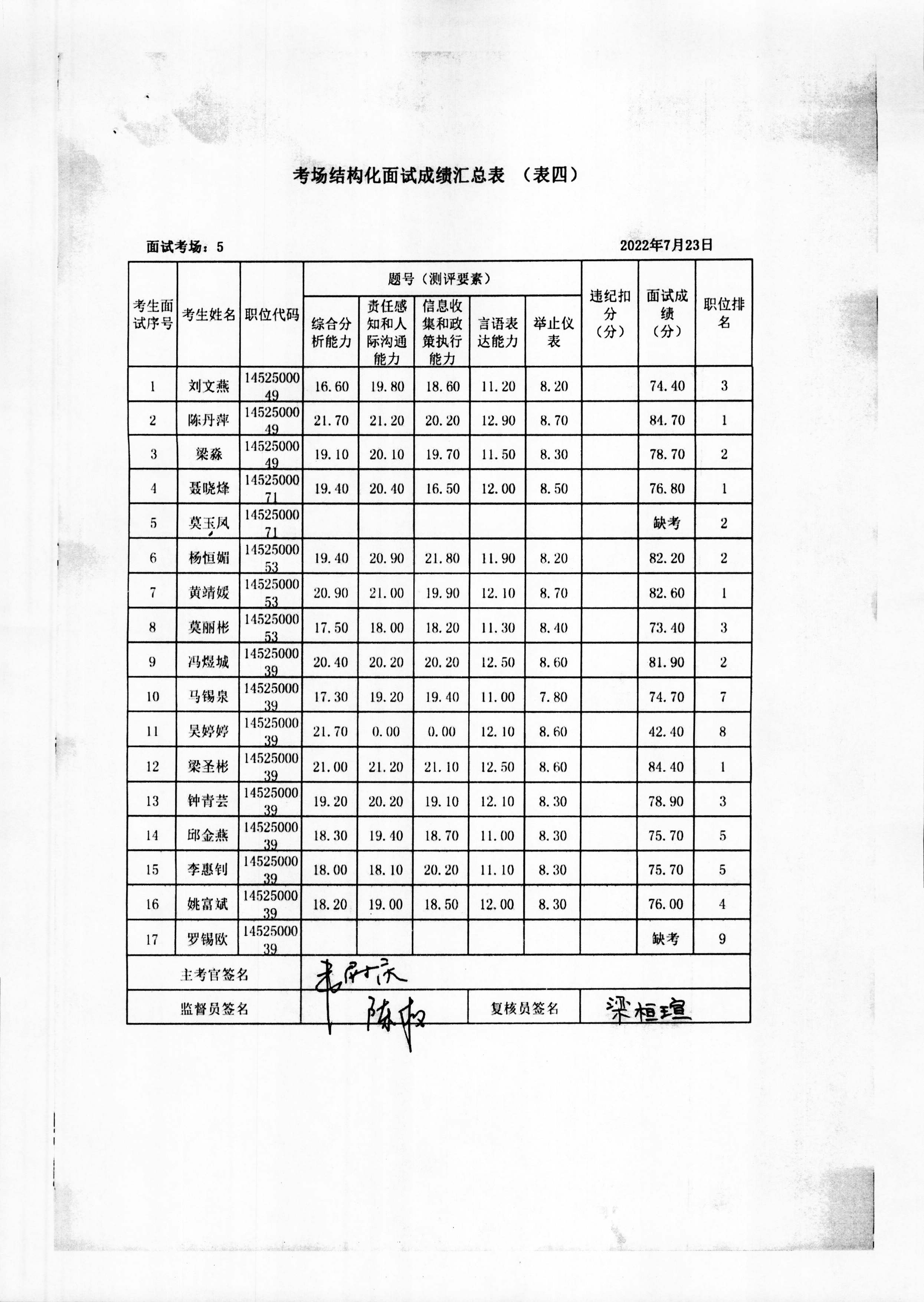 2022年玉林市直(含玉州区、福绵区、玉东新区)事业单位公开招聘人员面试成绩公布(7月23日)