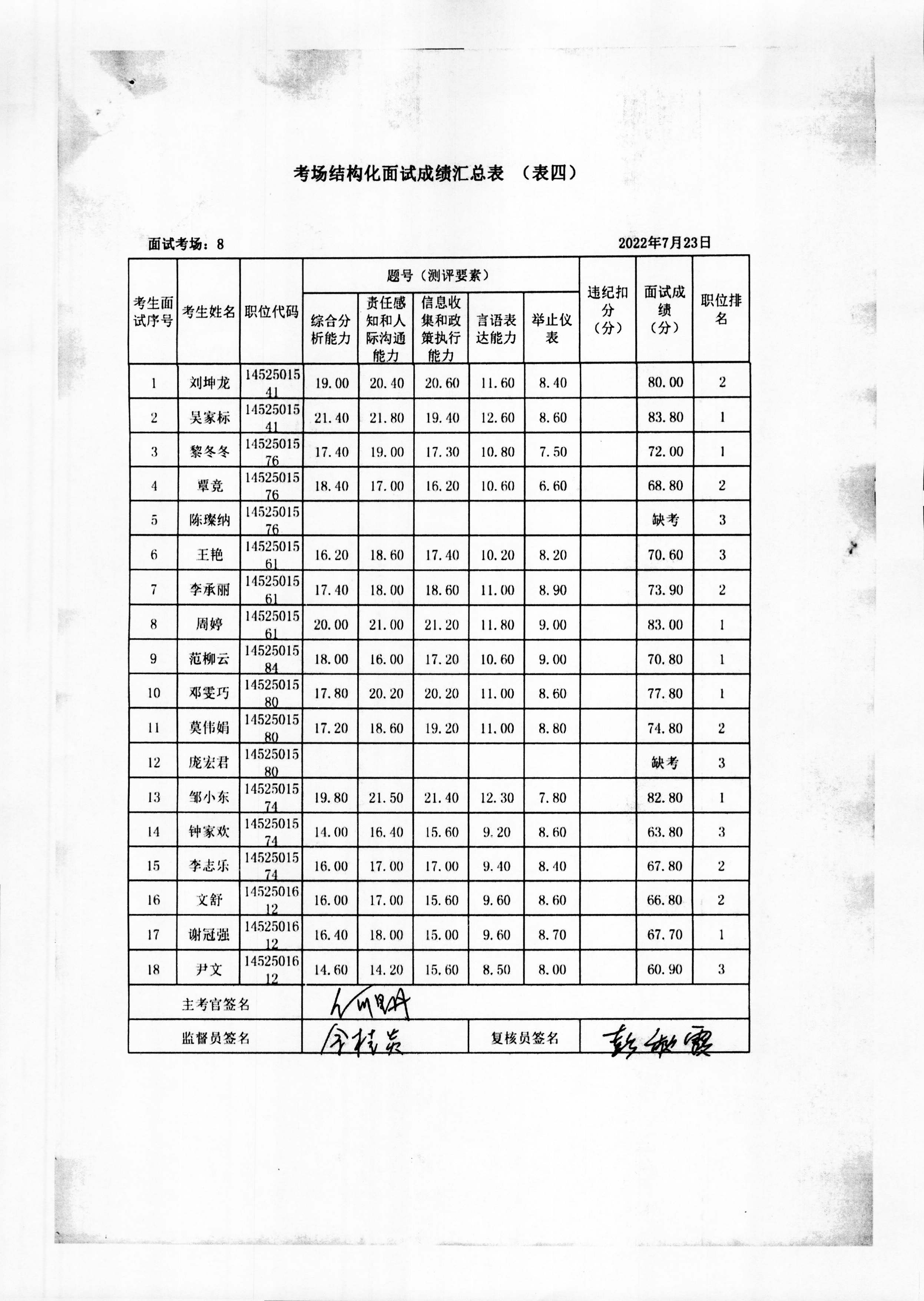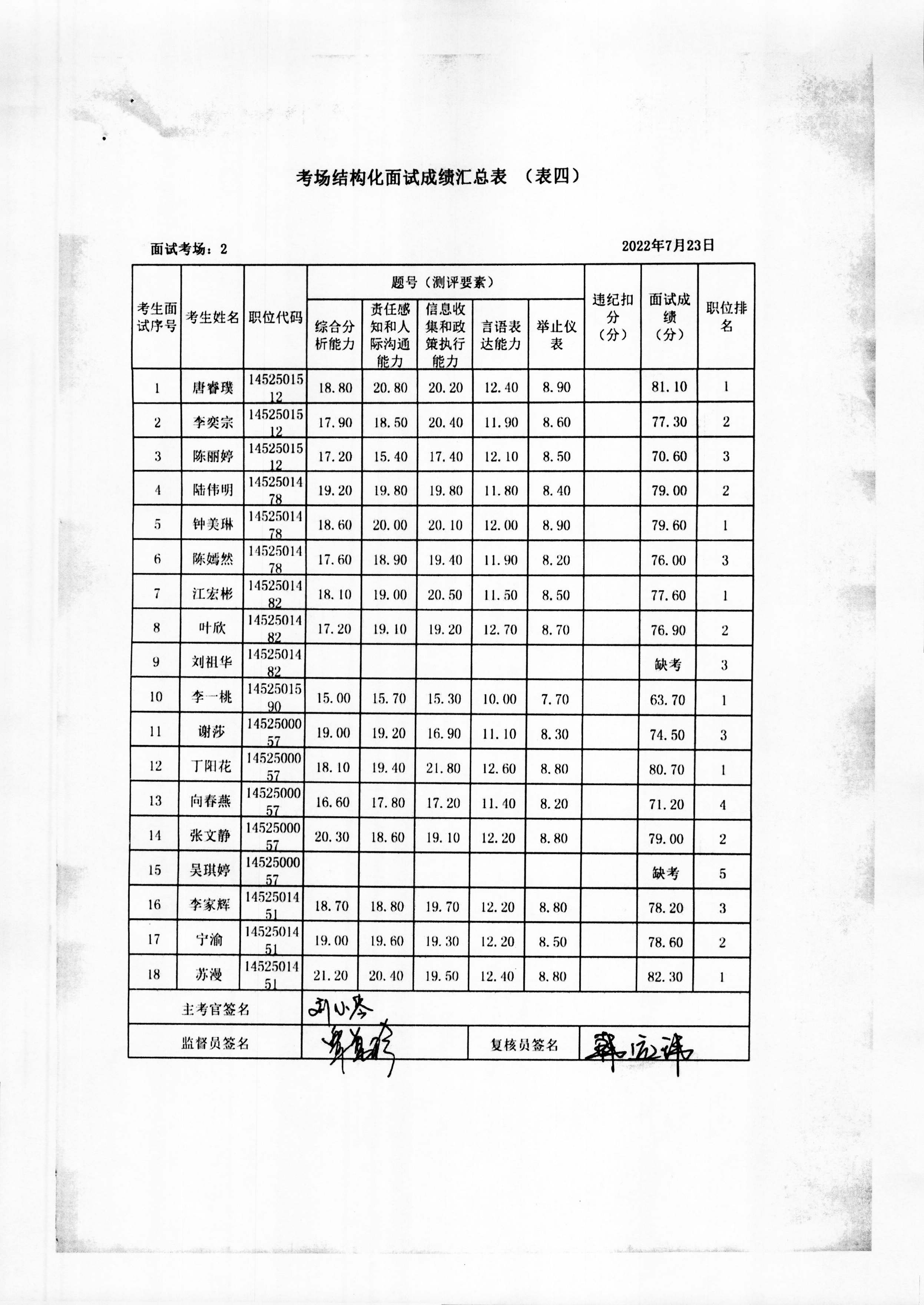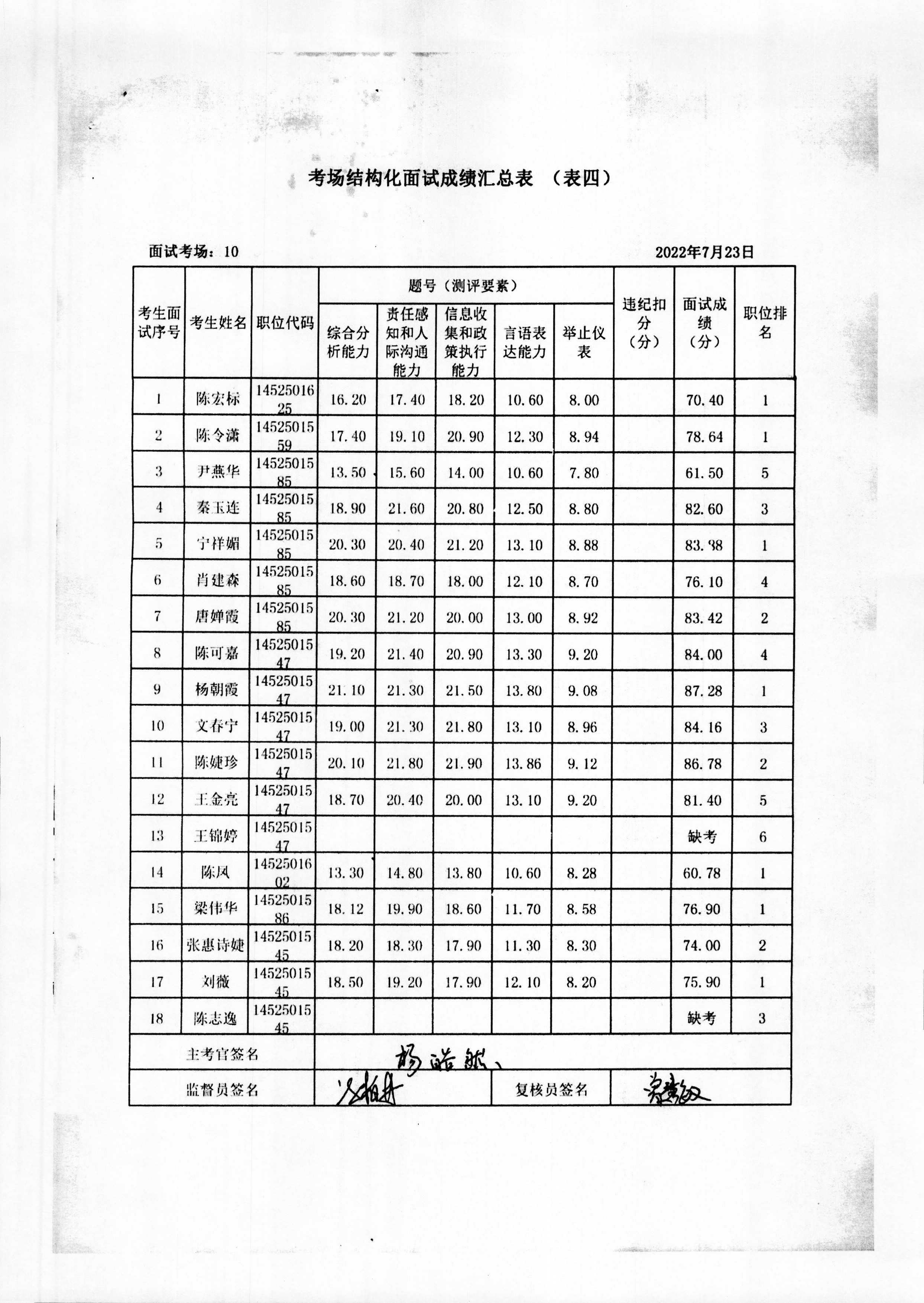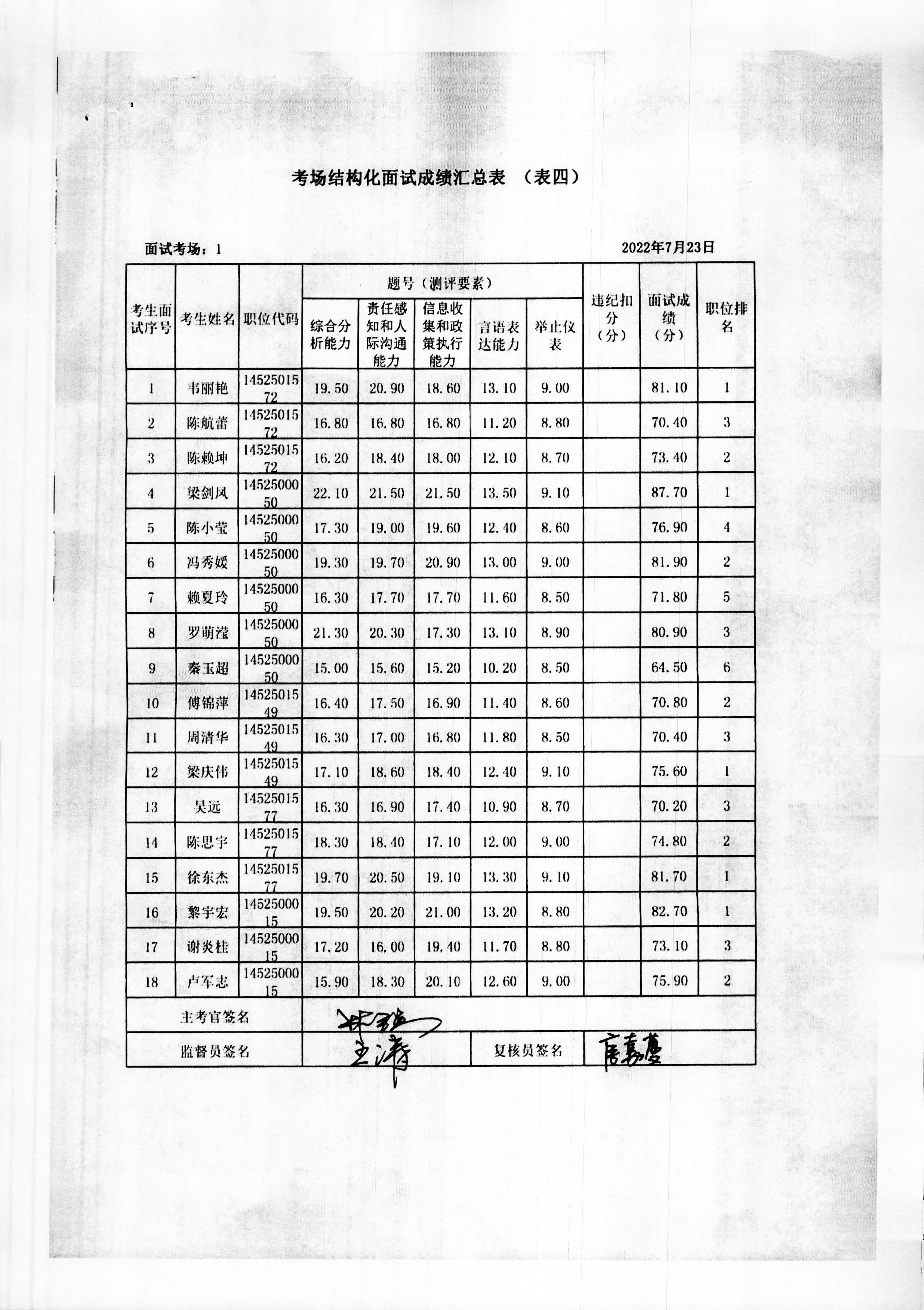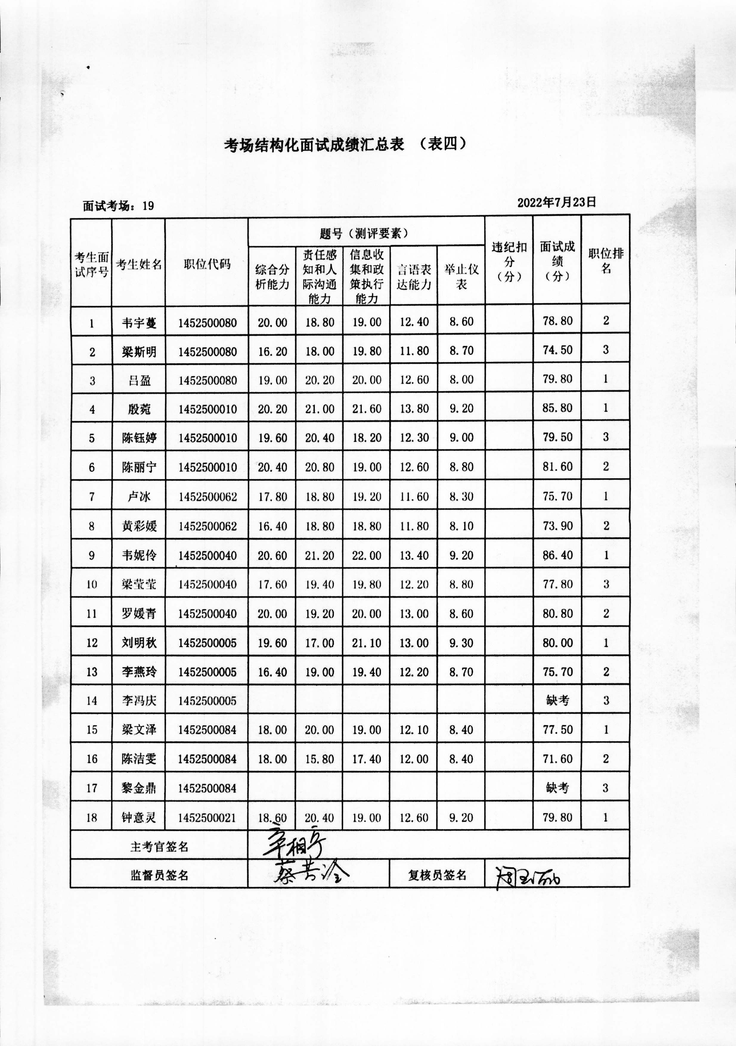 2022年玉林市直(含玉州区、福绵区、玉东新区)事业单位公开招聘人员面试成绩公布(7月23日)