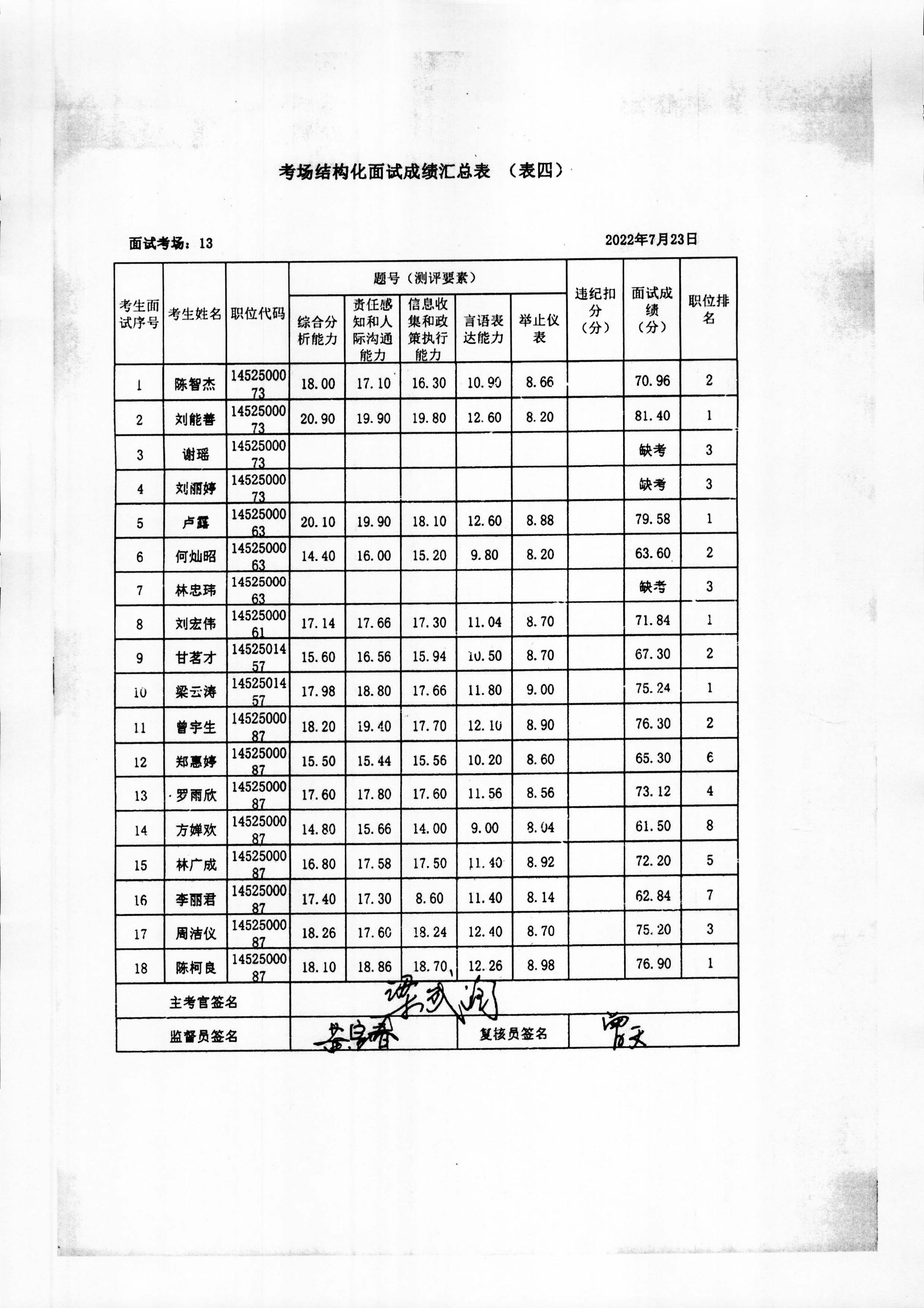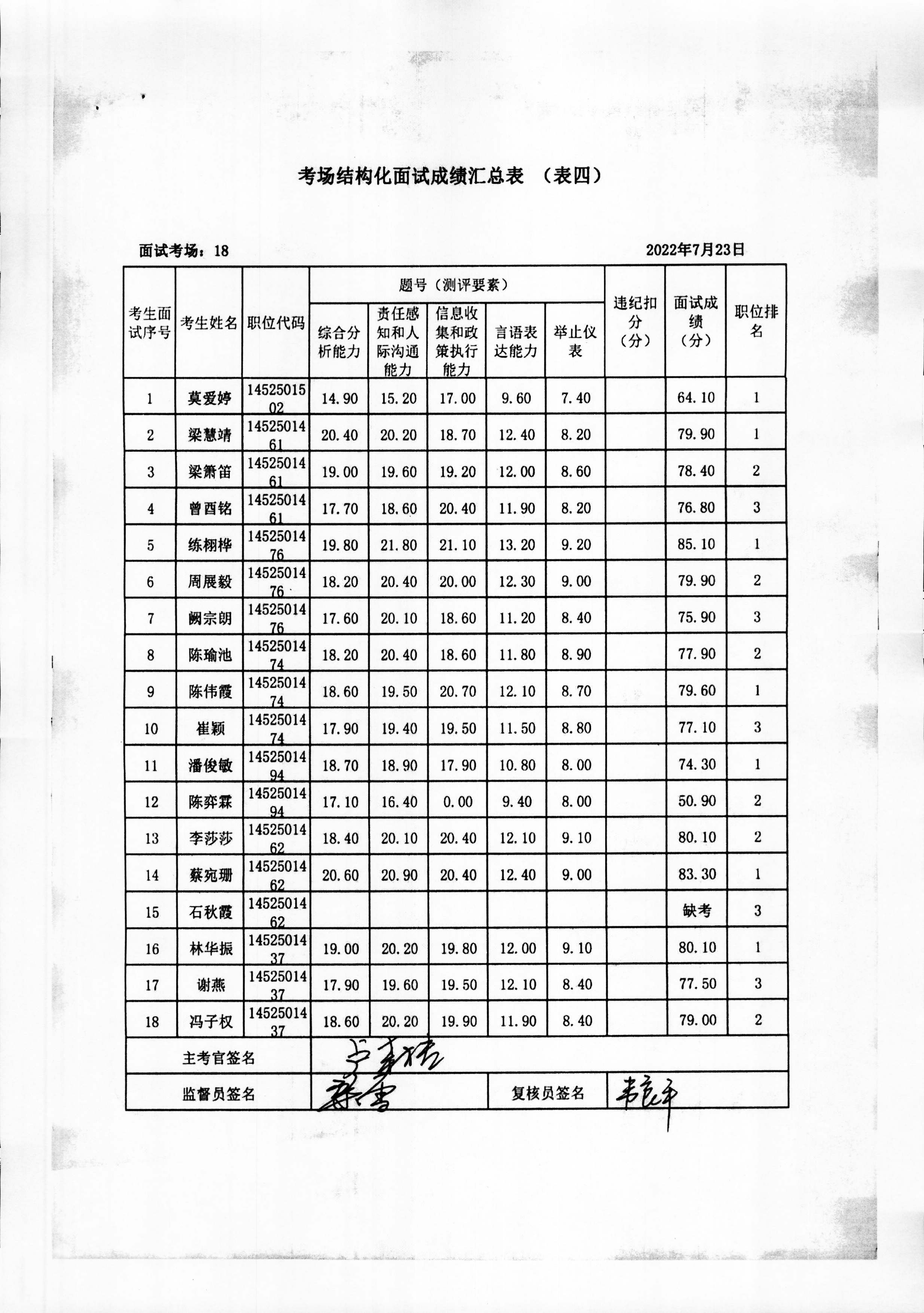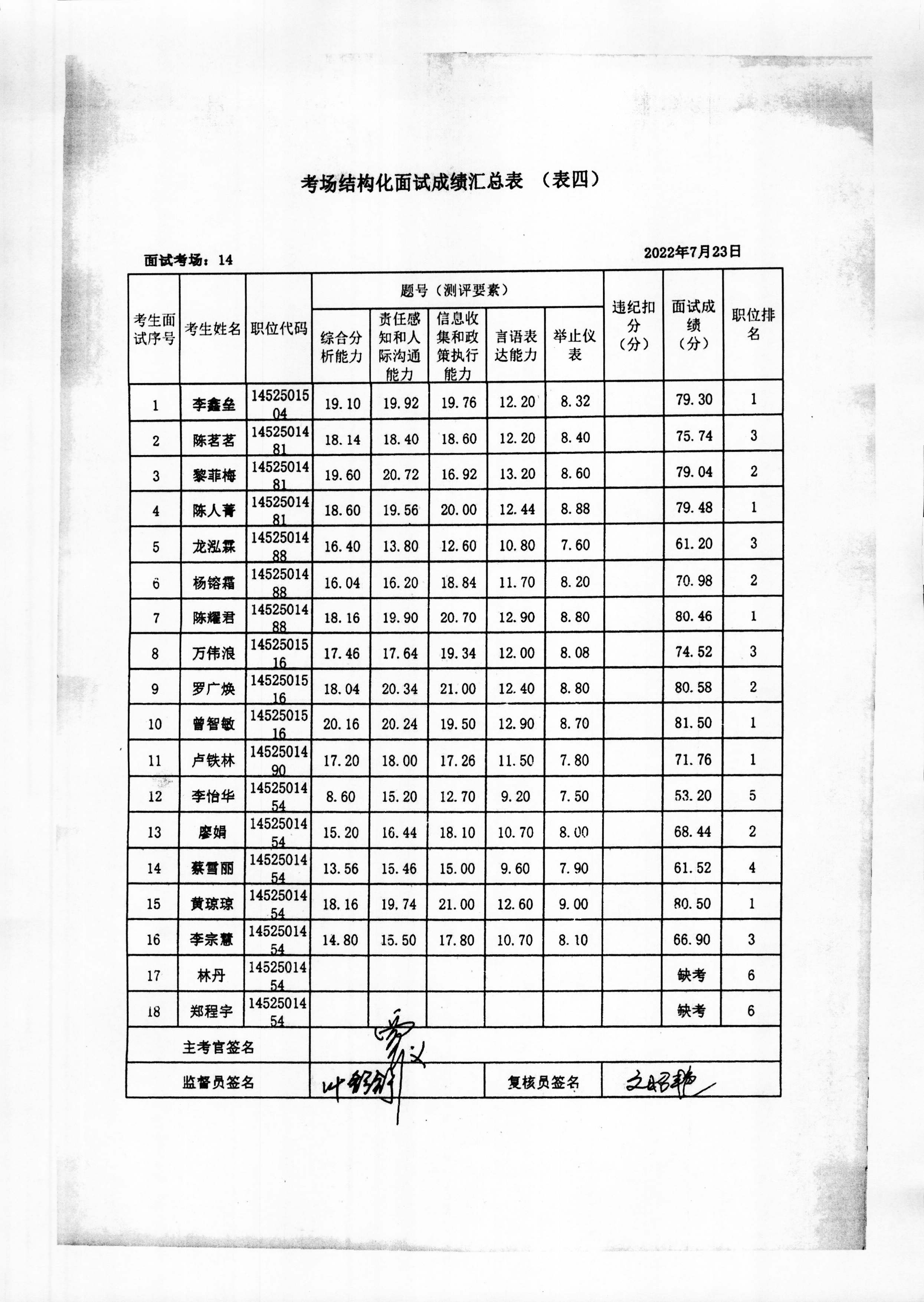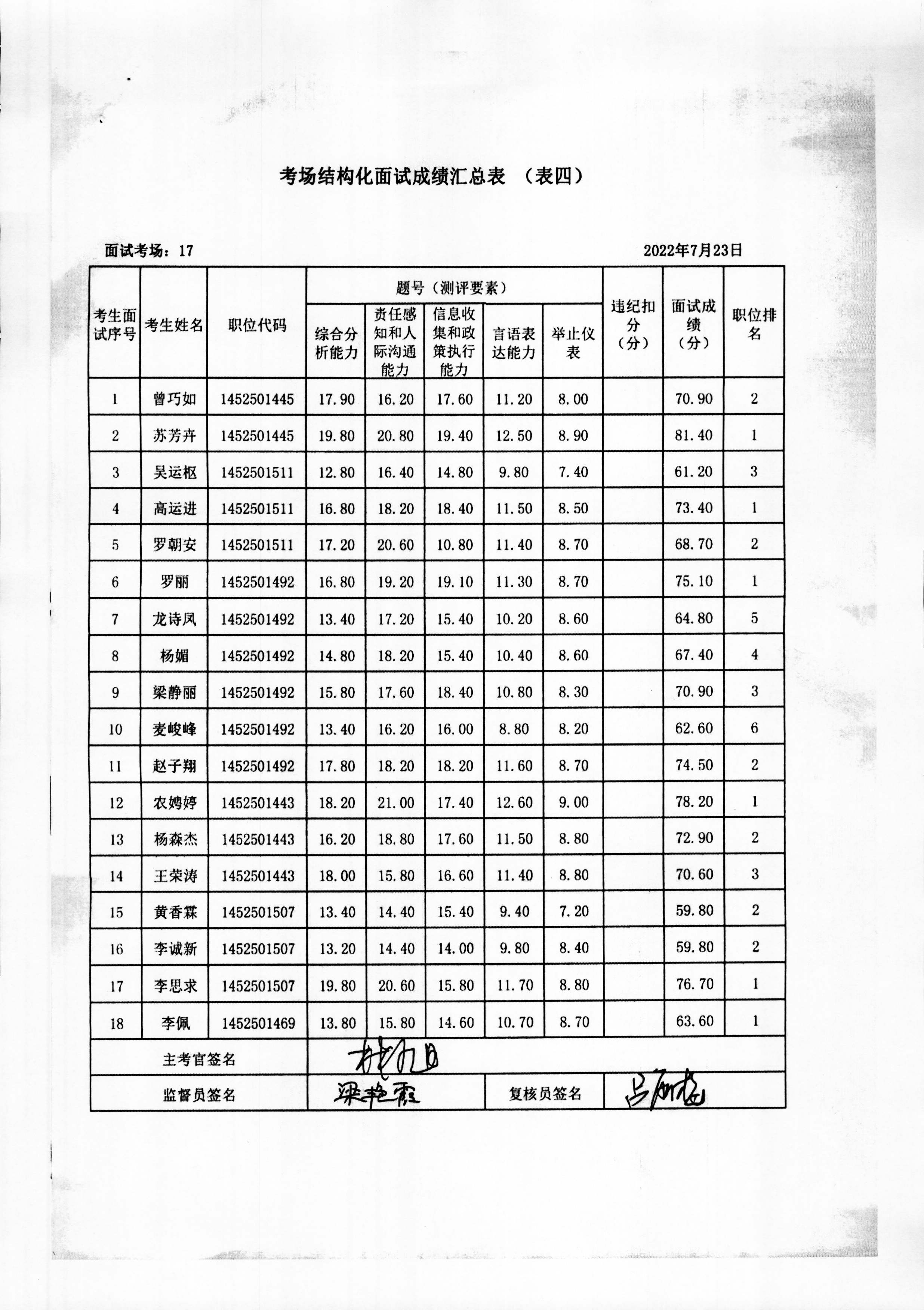 2022年玉林市直(含玉州区、福绵区、玉东新区)事业单位公开招聘人员面试成绩公布(7月23日)