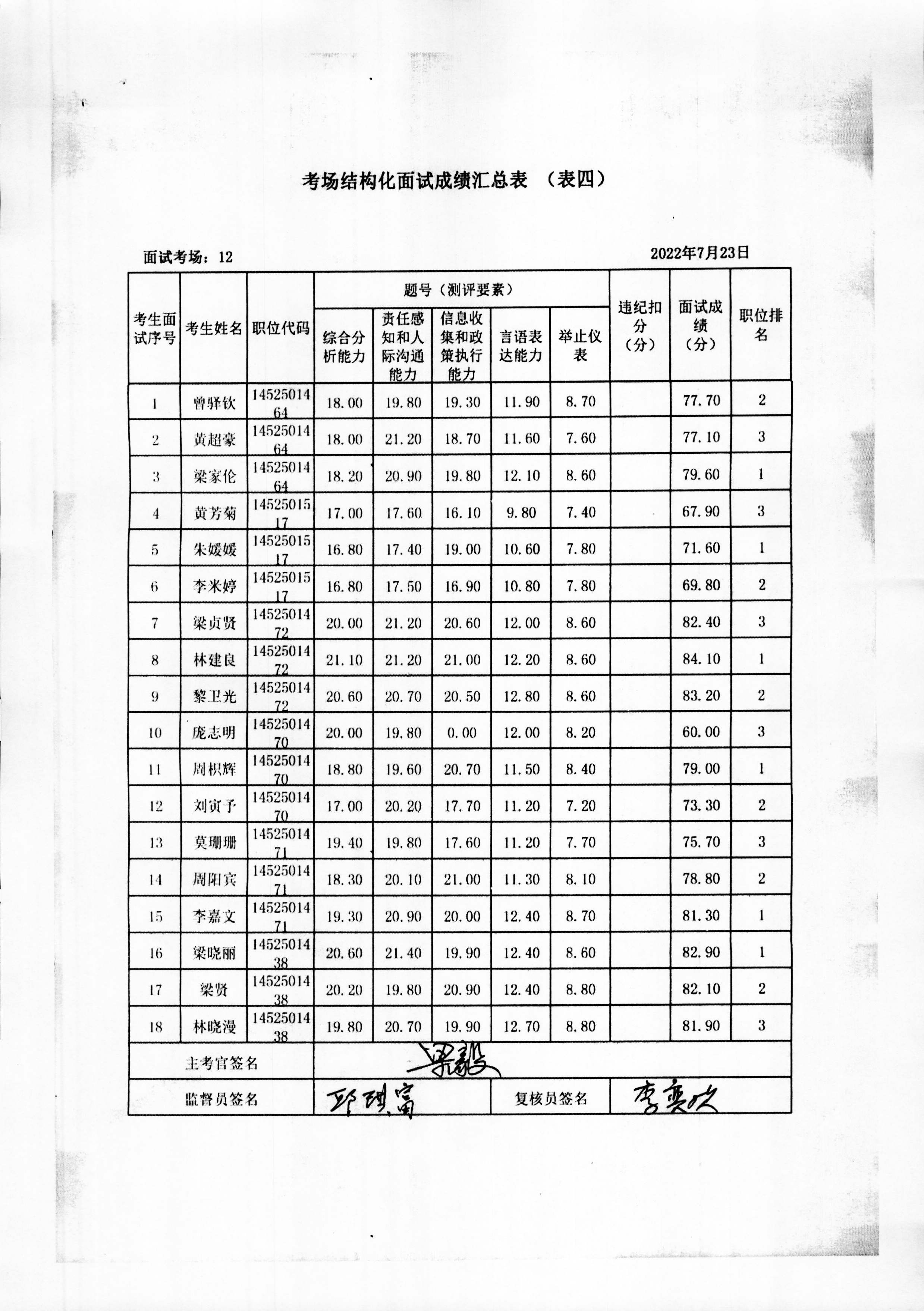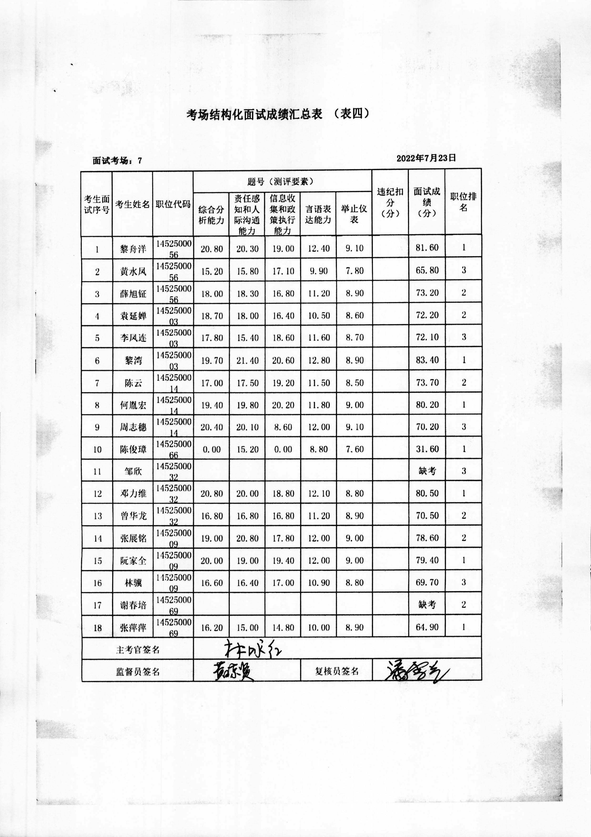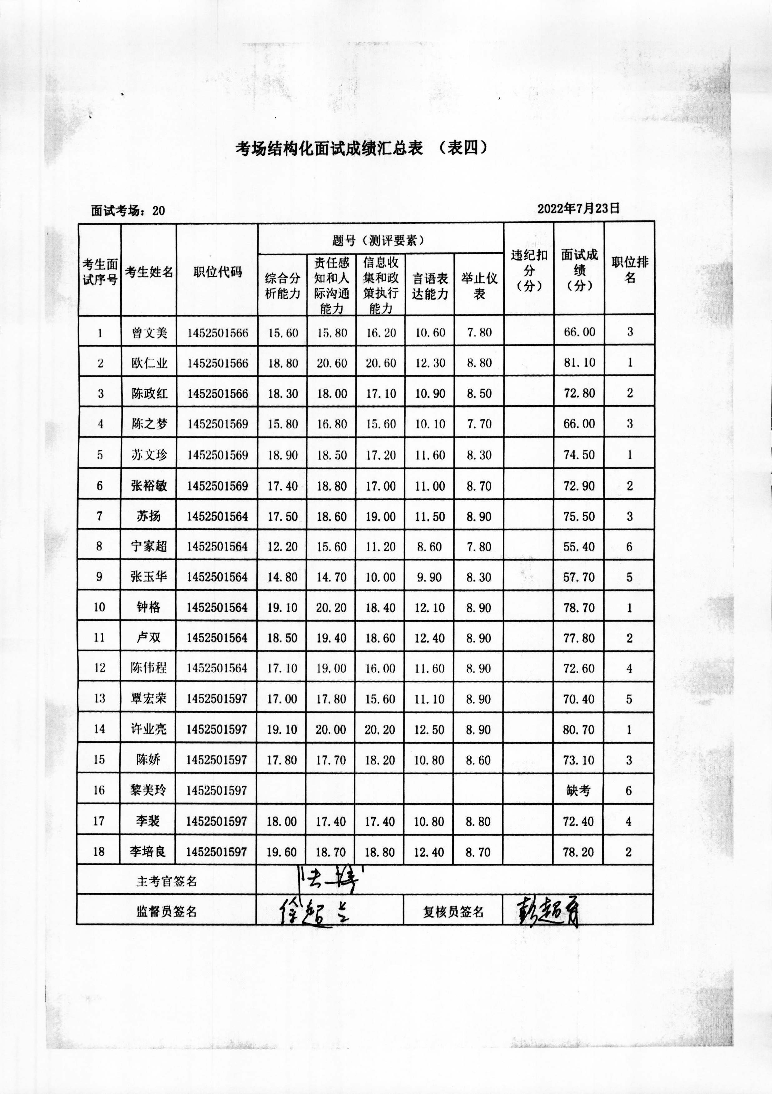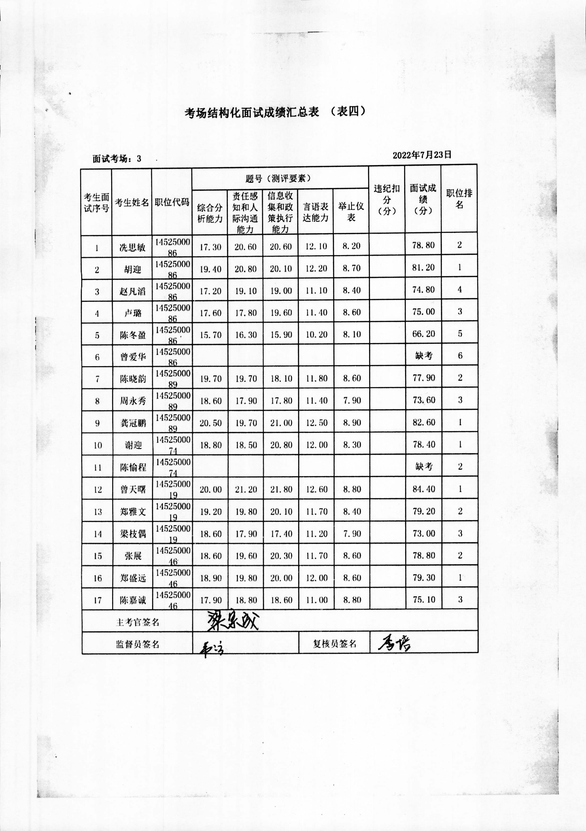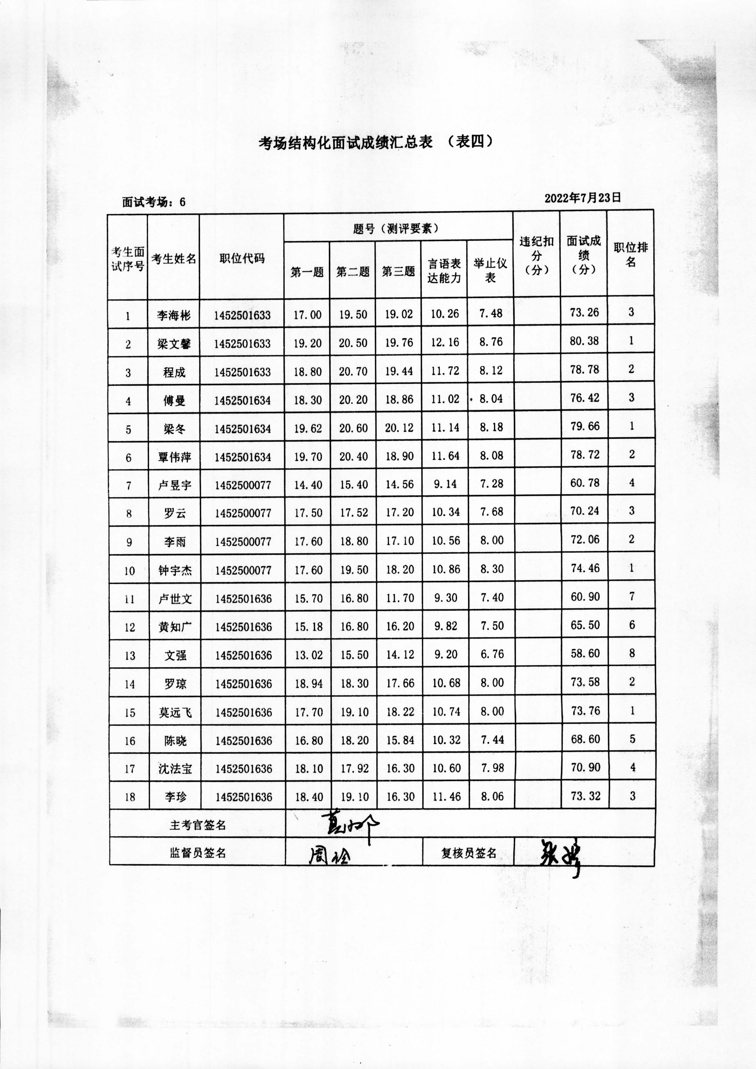 2022年玉林市直(含玉州区、福绵区、玉东新区)事业单位公开招聘人员面试成绩公布(7月23日)