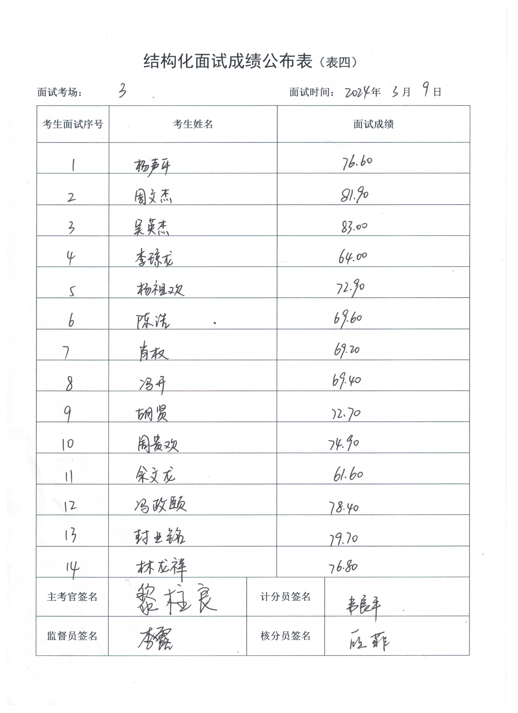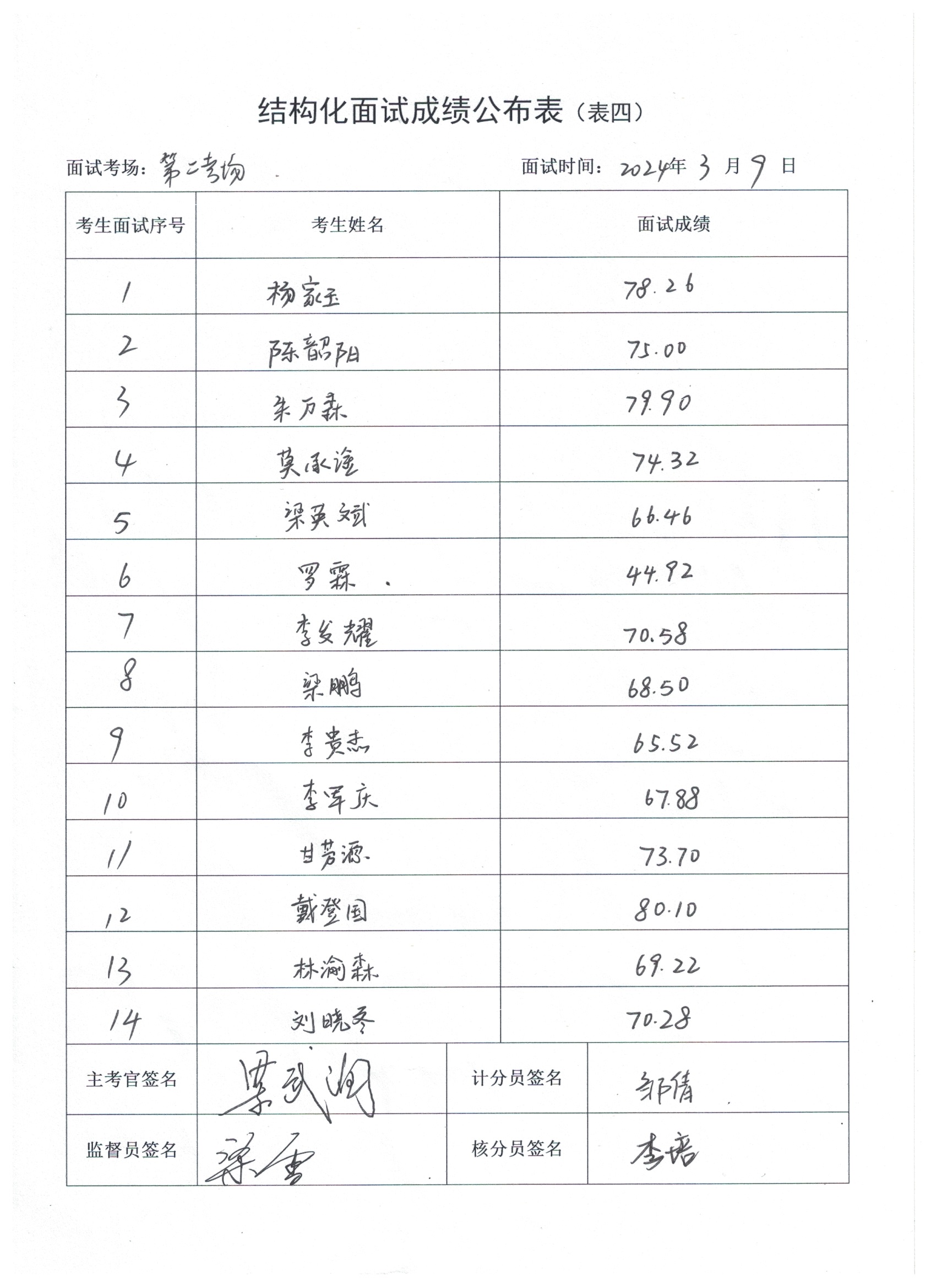 2024年上半年玉林市事业单位公开招聘应征入伍普通高校毕业生结构化面试成绩公布