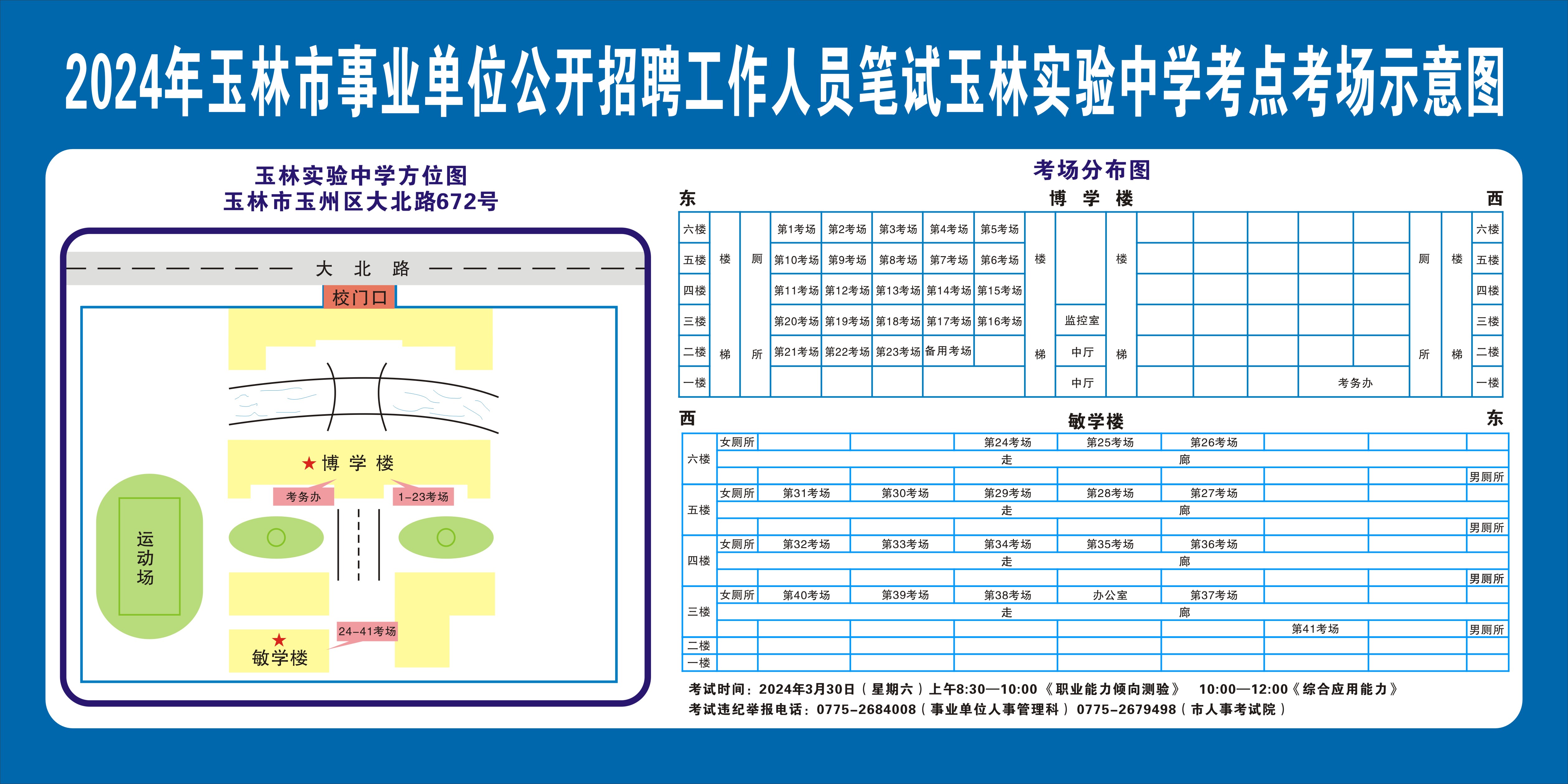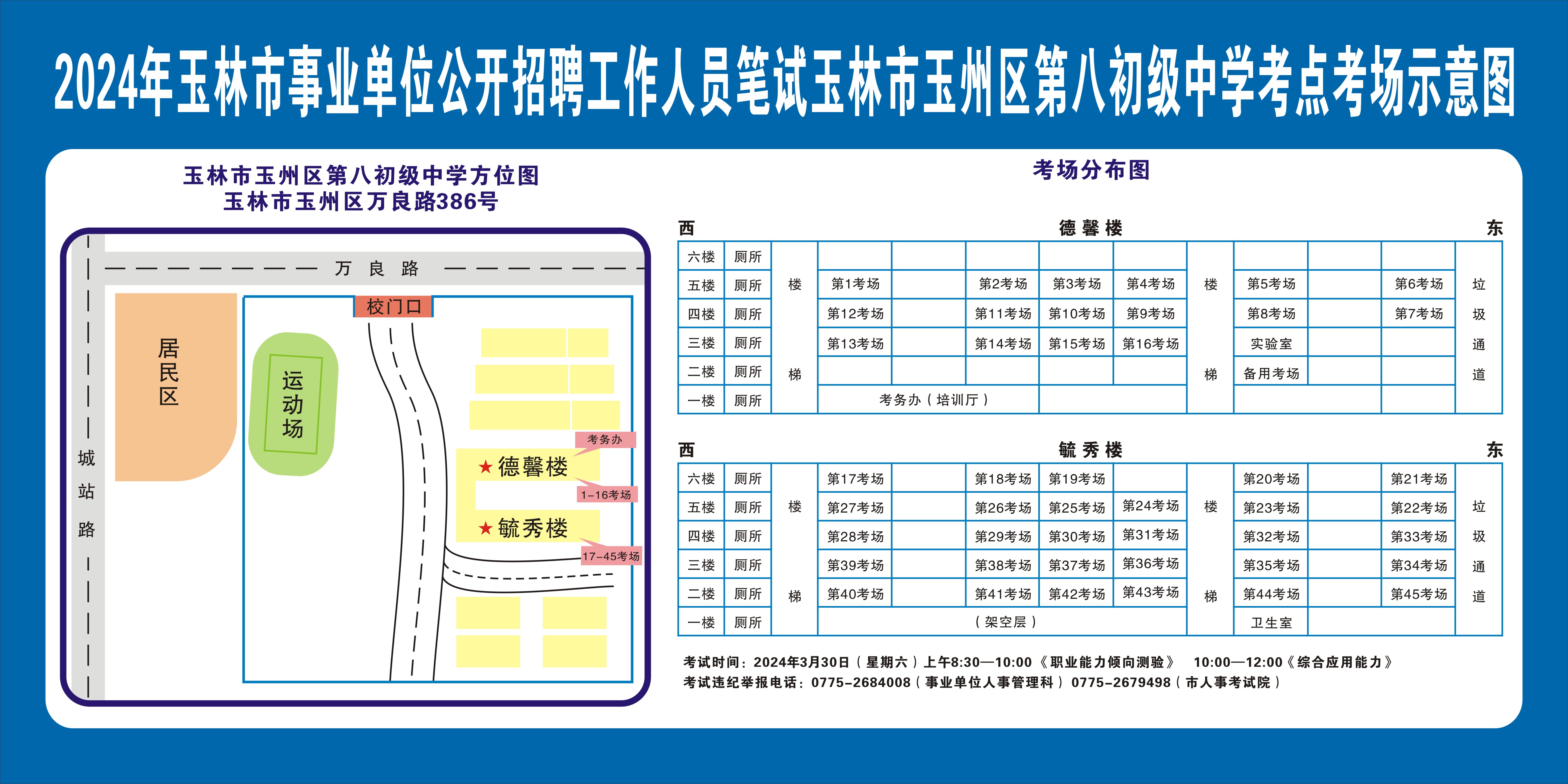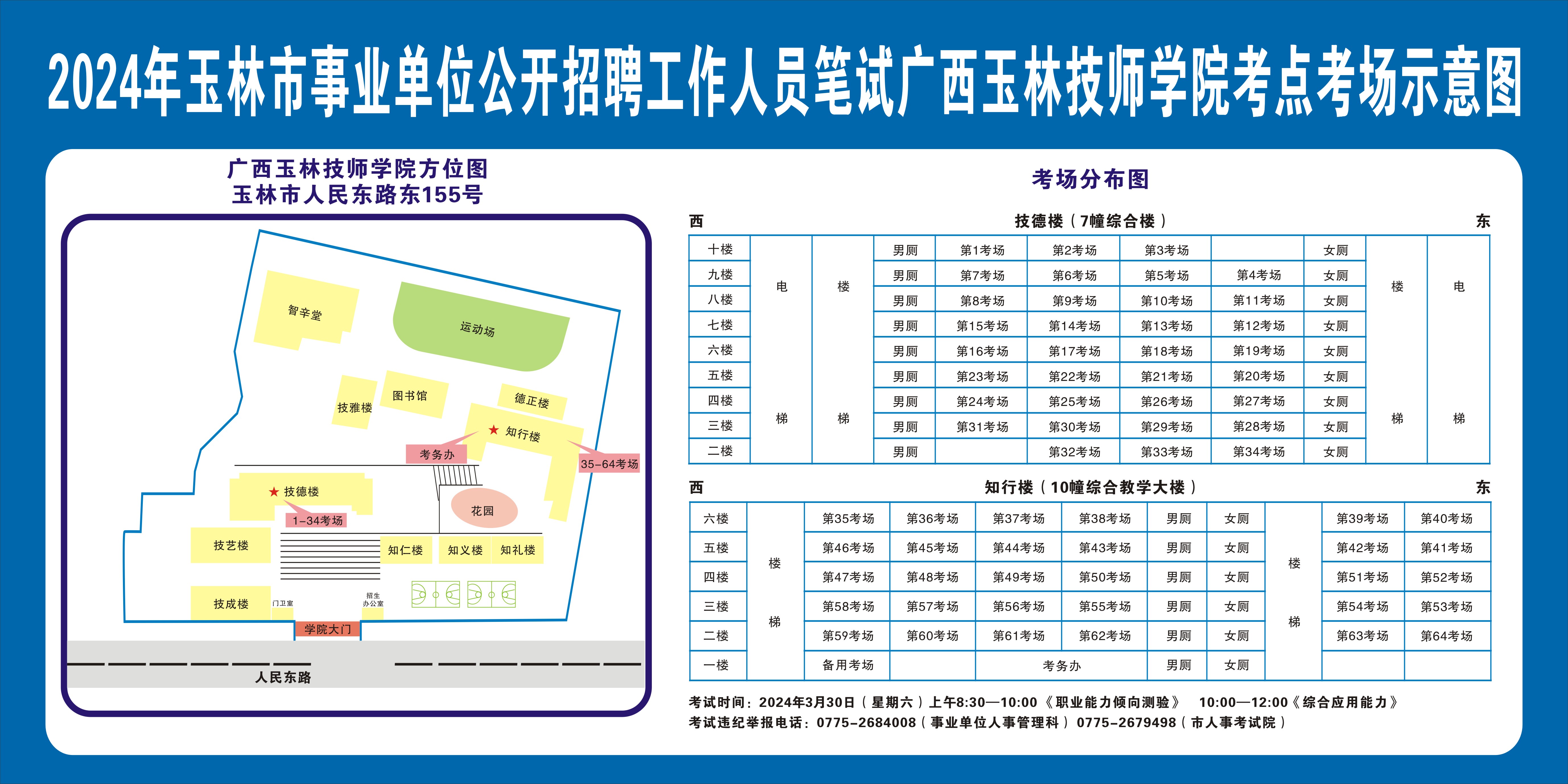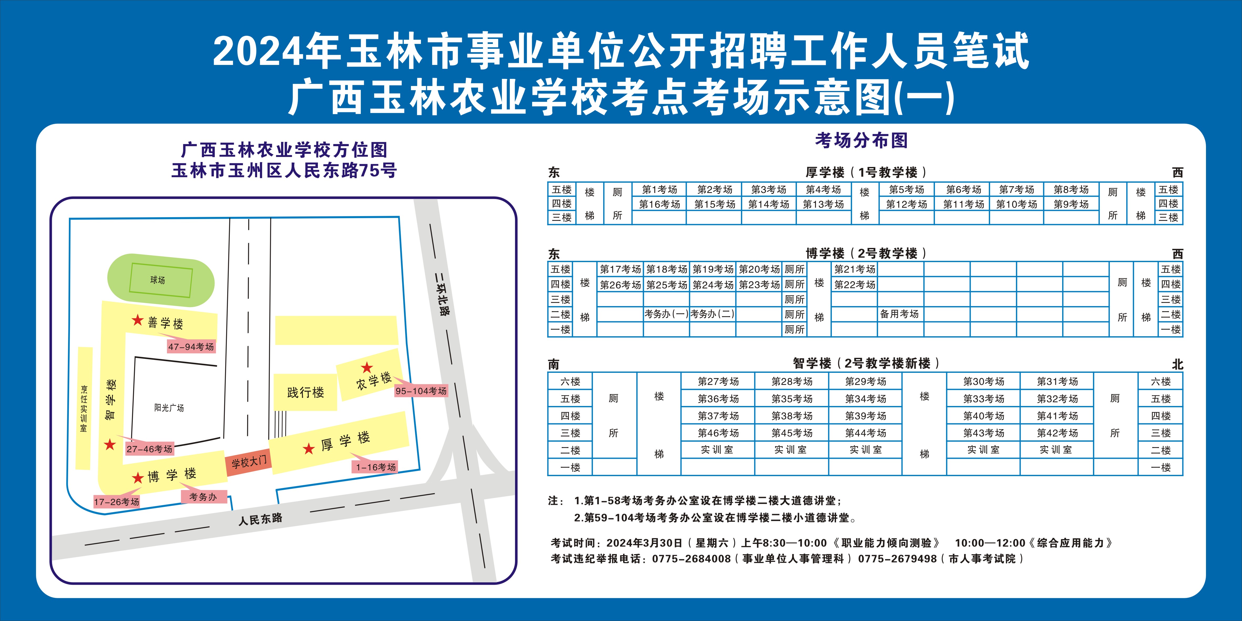 2024年玉林市事业单位公开招聘工作人员笔试将于3月30日举行,现就有关注意事项提示如下,请广大考生做好应试准备工作,准确掌握考试时间、考点地址及相关注意事项。