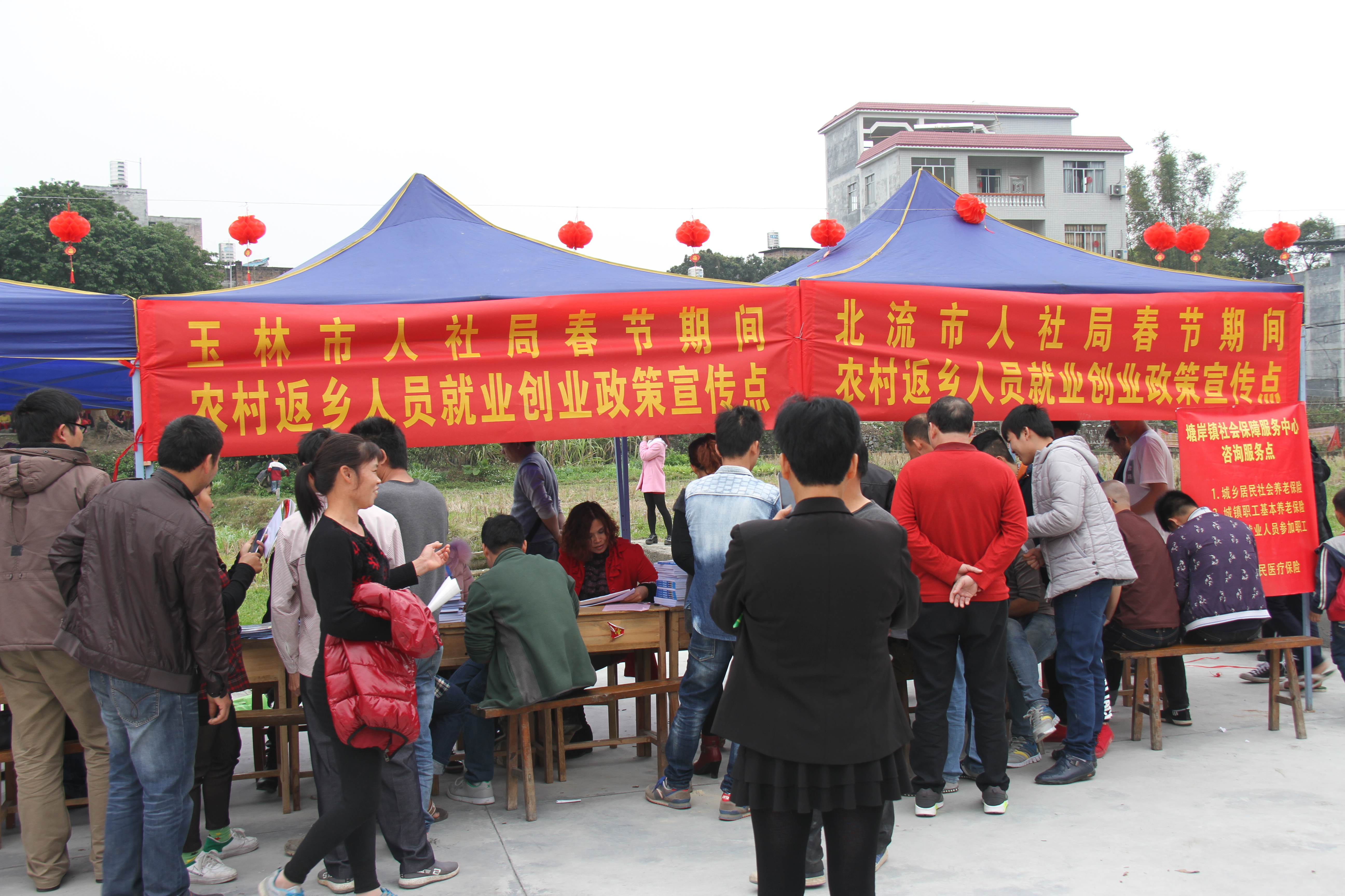 与往年不同的是,今年北流市人社局还将招聘会现场向镇、村、屯延伸,实行四级联动。在塘岸镇、民乐镇等镇、村、屯举办招聘会分会场,并在活动现场开设“返乡人员招聘专窗”、精准扶贫招聘专区,重点面向农村返乡人员、建档立卡贫困人员进行招聘,引导农村返乡人员就近就地就业创业,着力为各类就业困难人员等群体搭建供需平台,提供就业服务。招聘会现场还安排就业培训、创业担保贷款、社会保险、劳动维权等就业和社会保障政策咨询服务,为外出务工农村返乡人员提供政策咨询。