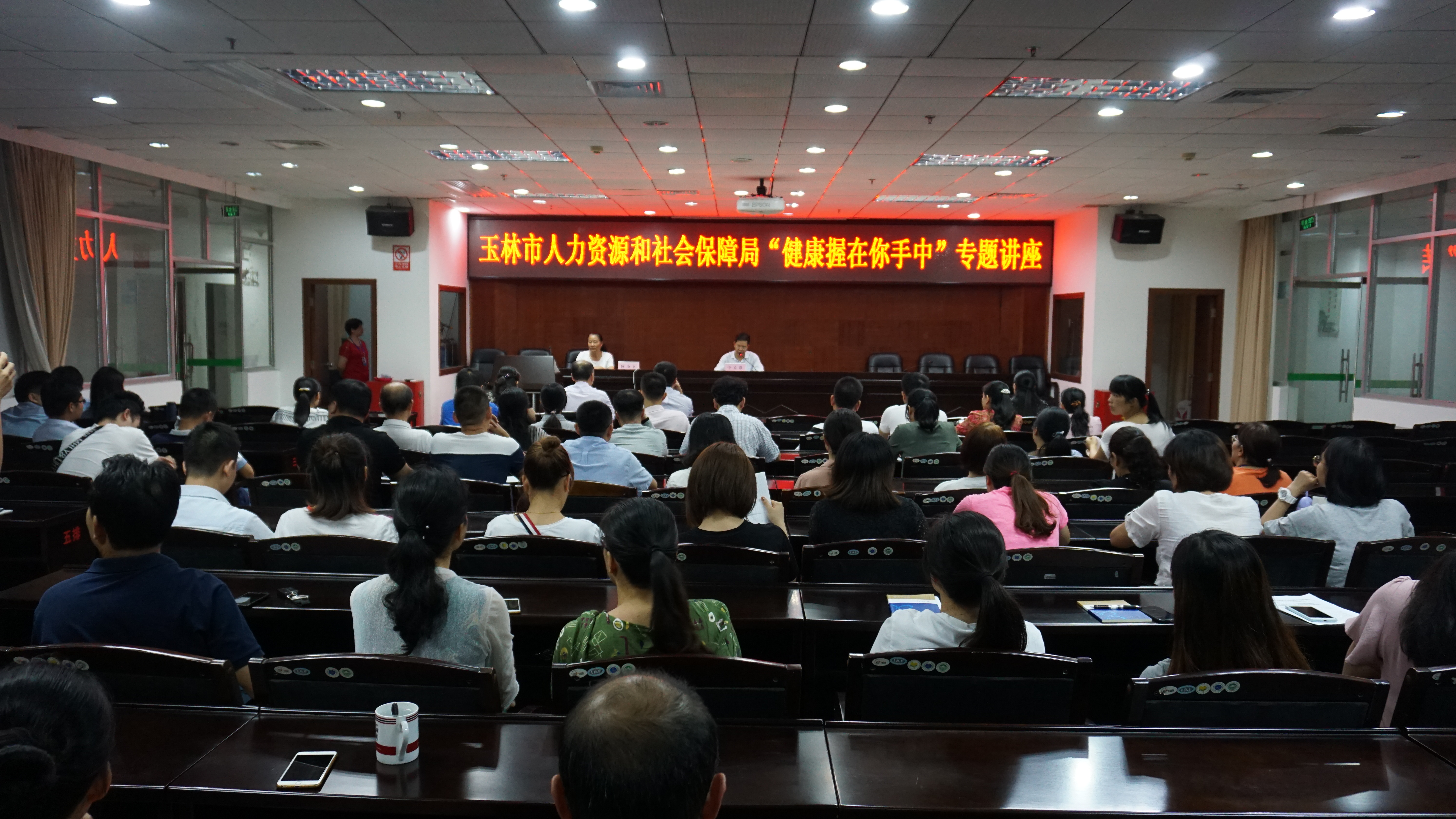 为普及爱国卫生知识,提高干部职工的自我保健意识和能力,倡导文明健康的生活方式。10月9日,市人社局举办“健康握在你手中”专题讲座,邀请了玉林市红十字会医院副院长俸小平同志授课。讲座由市人社局副局长、党组成员宁长春同志主持,市人社局机关及下属单位干部职工约100人参加。