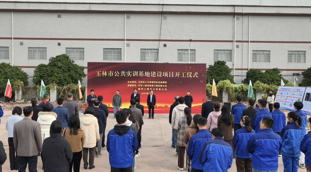 近日,玉林市公共实训基地建设项目开工仪式在玉林高新技术开发区举行。建设公共实训基地,是贯彻落实习近平总书记关于技能人才工作重要论述和党的二十大、二十届历次全会精神的具体行动,也是推动我市高质量发展、锻造高素质技能人才、促进高质量充分就业的重要举措。玉林市人社局党组书记、局长靳忠出席仪式并宣布项目开工,副局长韦彦敏致辞。承建单位中交一航局西南工程有限公司、设计单位都创工程设计有限公司、监理单位广西翔威建设有限责任公司的负责人携项目组成员参加活动。